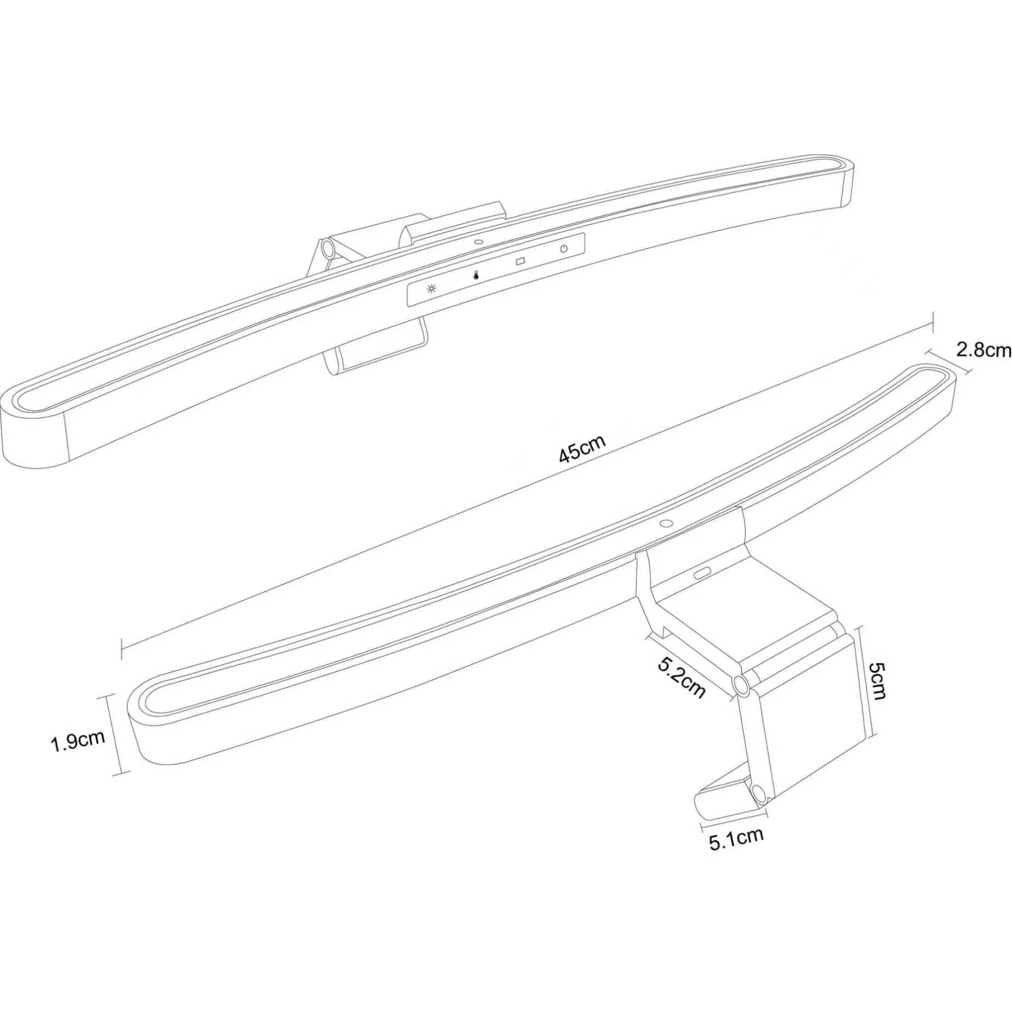 A curved monitor LED light bar with luxurious remote control, stepless dimming and CCT adjustment, 3000K–6500K color temperatures, ECO 2-hour timer and memory function. USB powered eye-caring light suitable for 27–49” curved monitors with max thickness 9cm, ideal for professional designers, programmers, or home office users.